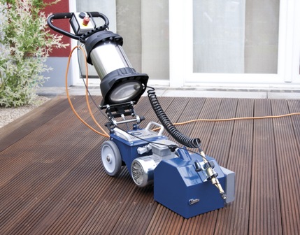 Die Grundreinigung der Terrasse erfolgt ohne Wasser und Chemie.
